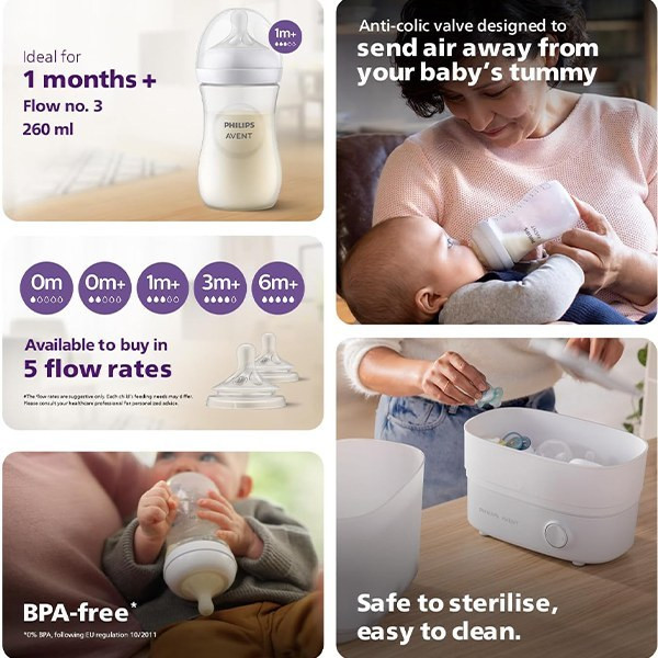ویژگی های شیشه شیر نچرال ریسپانس Avent