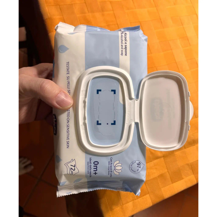 دستمال مرطوب چیکو chicco مدل Salviettine Profumate محصولی از کشور ایتالیا است که حاوی 97 درصد آب و عصاره نیلوفر آبی است. این محصول برای پوست حساس نوزادان از بدو تولد مناسب است. فاقد الکل، پارابن و رایحههای مصنوعی بوده و از ایجاد التهاب و حساسیت در پوست جلوگیری میکند. دارای خواص ضد حساسیت و ضد التهاب است.